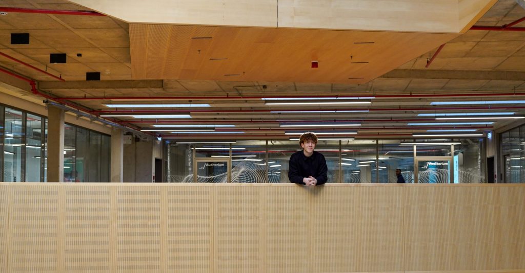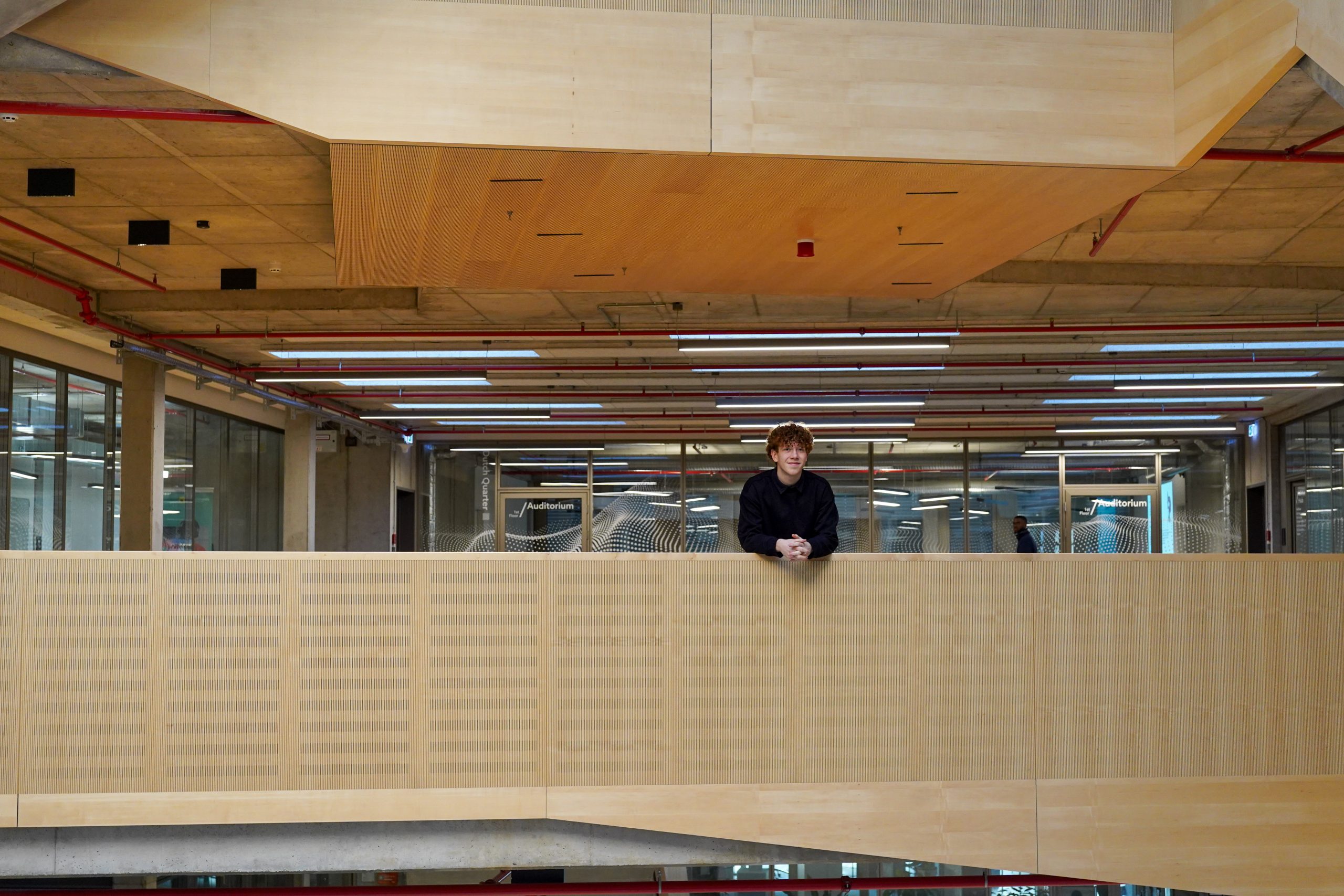 Schülerpraktikant Kilian im Workhub - Campus am Jungfernsee Potsdam, wo er an einem Teamtag teilgenommen hat. Foto: Lutz Langer